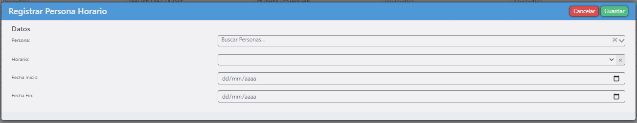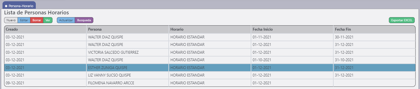 - Al hacer click en este botón se vuelve a listar las asignaciones de persona-horario del personal administrativo con los ultimos cambios realizados.