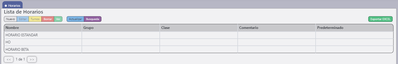 - Nos permite exportar los datos de los horarios en un archivo excel.