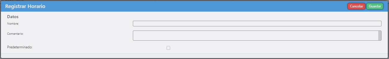 - El botón ver se activa al seleccionar un item del listado de horarios. Al hacer click en este botón nos abrirá un formulario con los datos del horario de solo lectura.