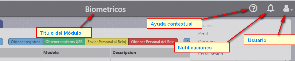 Barra donde se muestra el titulo del módulo actual, contiene los siguientes elementos: