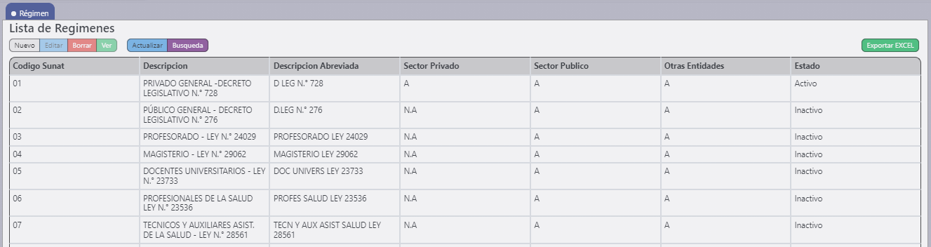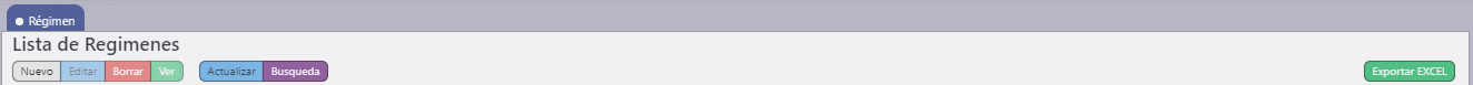 - Nos permite exportar los datos de los regimenes en un archivo excel.