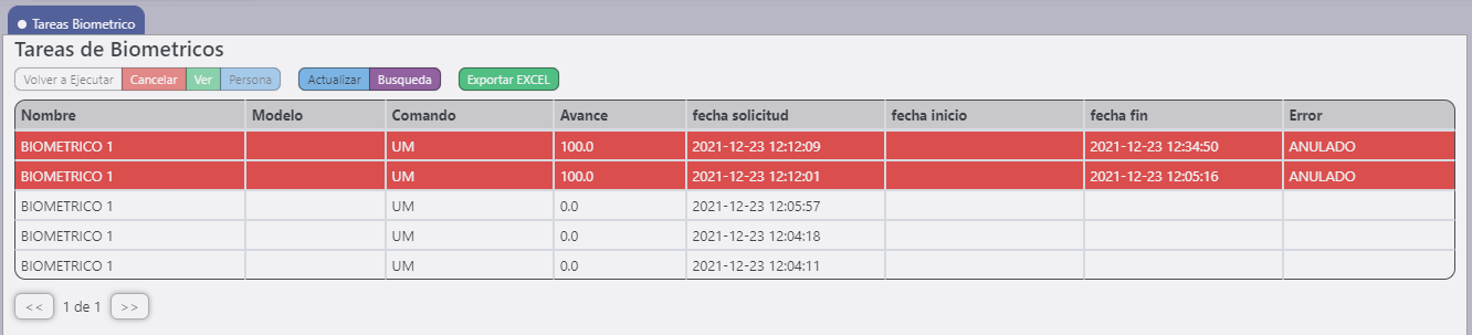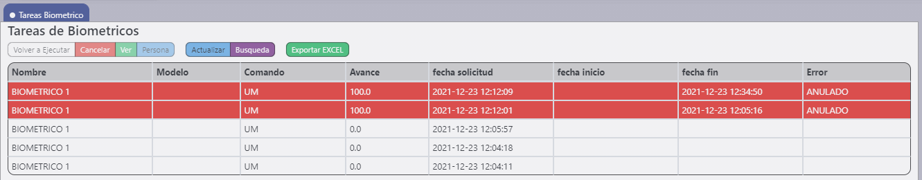 - El botón volver a ejecutar vuelve a descargar la informacion del equipo biometrico para su posterior procesamiento.